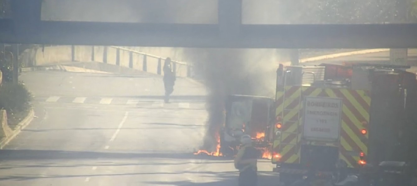 | 10/09/2025 Veículo pega fogo na Avenida Juscelino Kubitschek, no Itaim Bibi, em SP |
